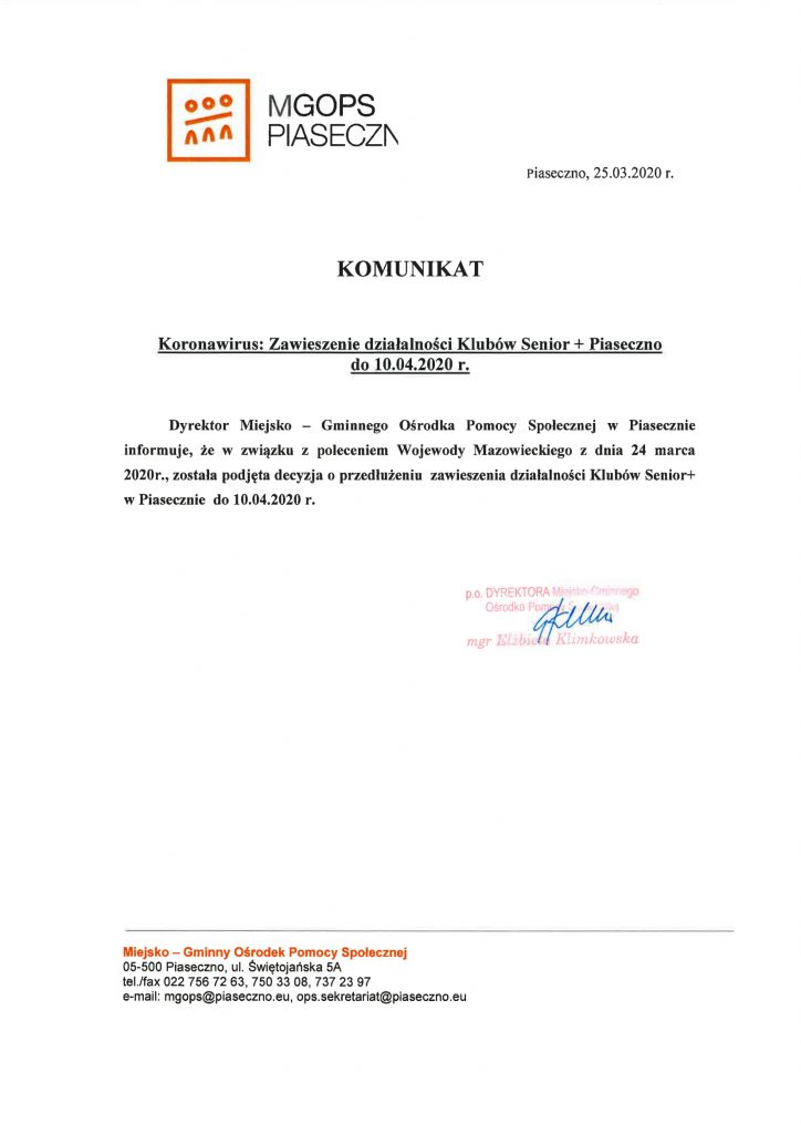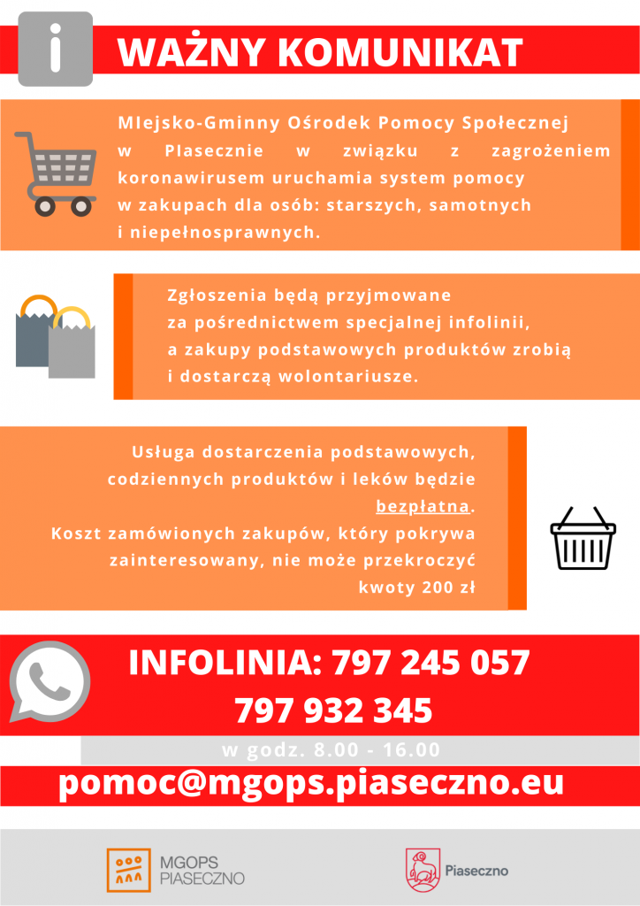 Miejsko Gminny Ośrodek Pomocy Społecznej informuje, że w dniu 10.04.2020 tj. Piątek, ośrodek będzie czynny w godzinach 08:00 - 14:00