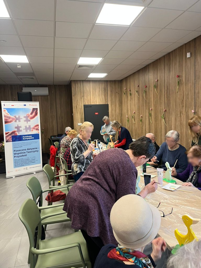 W dniu 18 marca 2026 r. zrealizowano działanie środowiskowe w ramach projektu „Piaseczno Aktywne – Wspólnie Tworzymy Przyszłość” w formie warsztatów malowania ozdób. Zajęcia odbyły się w Przystań Pod Klonami w Piasecznie i skierowane były do uczestników projektu.